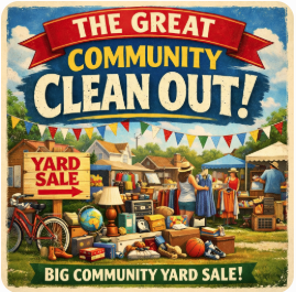 The Community Yard Sale is the 2nd Saturday in June from 10-4